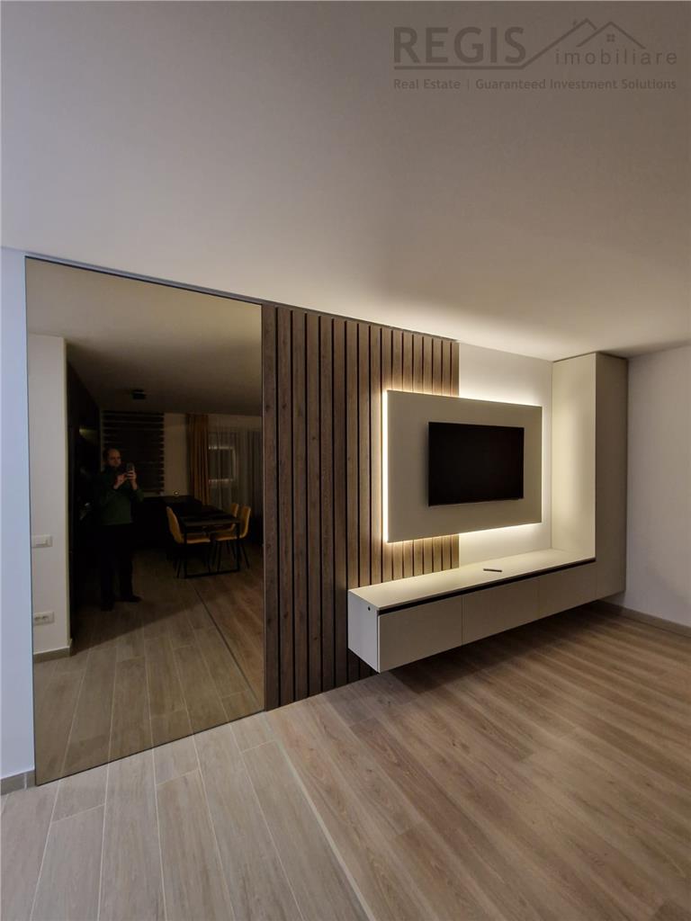 Apartamentul este atent intretinut, se prezinta intr-o stare excelenta si foarte curat, fiind amenajat intr-un stil contemporan cu mobilier calitativ cu incalzire in pardoseala ce ofera un plus din punct de vedere al cheltuielilor. Zona de zi este completata de o canapea mare si confortabila, masa cu 4 scaune si smart TV, creand un ambient elegant si placut.