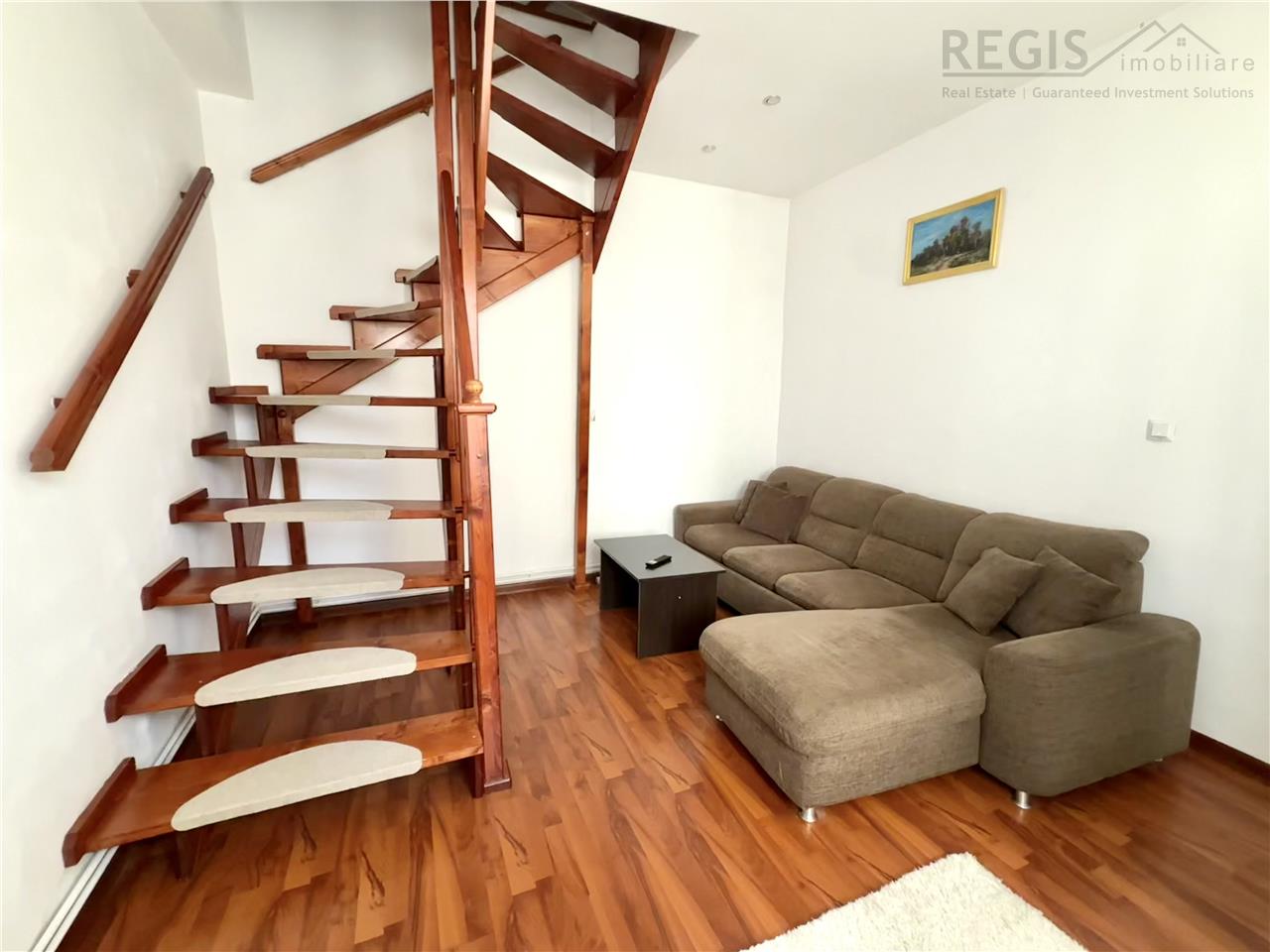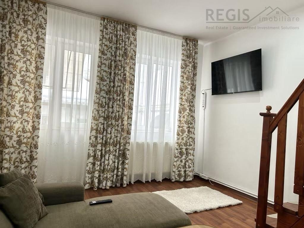 Regis Imobiliare va propune spre inchiriere un apartament deosebit, tip duplex, cu 2 camere, situat in Centrul Vechi al Brasovului, cu vedere spectaculoasa spre Tampa. O locuinta cu personalitate, perfecta pentru cei care apreciaza farmecul zonei istorice si confortul modern.
