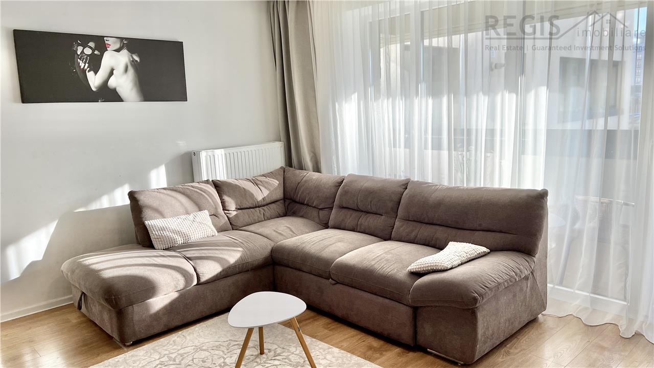 Cei 54 mp utili sunt armonios impartiti intr-o structura decomandata: hol, living, bucatarie, dormitor, baie, spatii auxiliare de depozitare (debara). Apartamentul este complet mobilat si utilat, cu mobilier modern si calitativ, electrocasnice inclusiv masina de spalat vase, tv -uri cu diagonala mare.