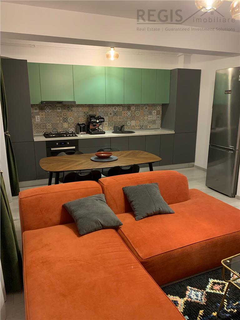 Apartamentul este atent intretinut, se prezinta intr-o stare excelenta si foarte curat, fiind amenajat intr-un stil contemporan cu mobilier calitativ si ornamente subtile dar placute. Zona de zi este completata de o canapea mare si confortabila, masa cu 4 scaune si smart TV, creand un ambient elegant si placut.