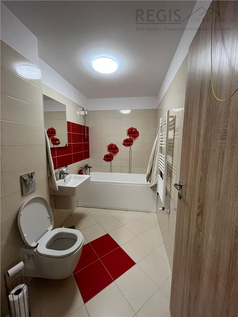 Livingul este spatios, luminos, dispune de tv, mobilier modern, canapea si masuta de cafea. Bucataria este complet mobilata si utilata, prezinta plita electrica, cuptor electric, frigider hota si spatii pentru depozitare. Baia este spatioasa, utilata, prezinta cada cu dus.