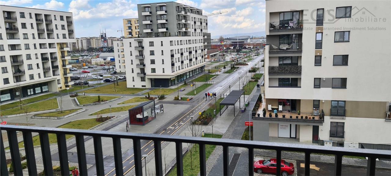 REGIS Imobiliare va propune spre inchiriere un studio modern, cu o suprafata utila de 42 mp + balcon generos de 7 mp, situat in cea mai buna zona din Brasov, chiar pe pietonala de la Coresi Shopping Resort.