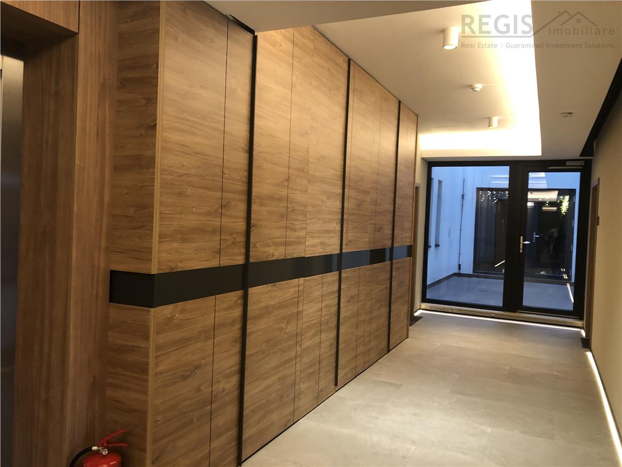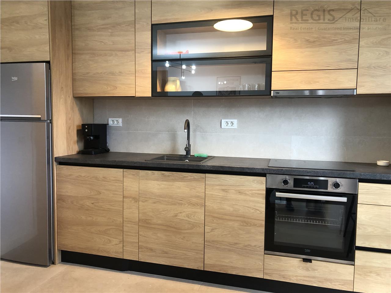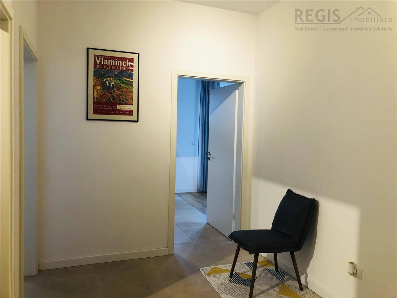 Compartimentarea este open space astfel: living luminos dotat cu aer conditionat, zona de servit masa, zona de bar, si bucatarie complet utilata modern eleganta cu masina de spalat vase. Holul este accesorizat cu dressing generos, modern, util si incapator. Dormitor luminos, complet mobilat de calitate, baie cu dus, aerisire naturala, cu multiple finisaje premium. Finisajele sunt de inalta calitate, includ încalzire în pardoseala, sanitare premium HansGrohe & Roca, gresie si faianta Vitacer (Spania), video interfon si sisteme de contorizare individuala.