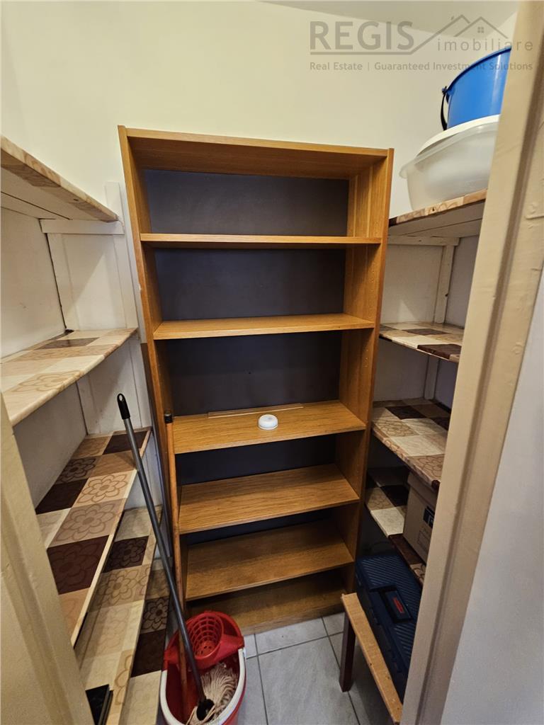 Bucataria este complet utilata cu frigider, cuptor cu microunde, masina de spalat, plita pe gaz, cuptor electric, hota si centrala termica proprie.