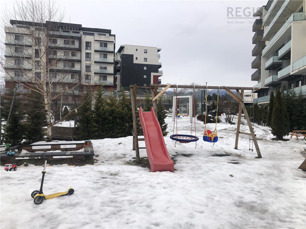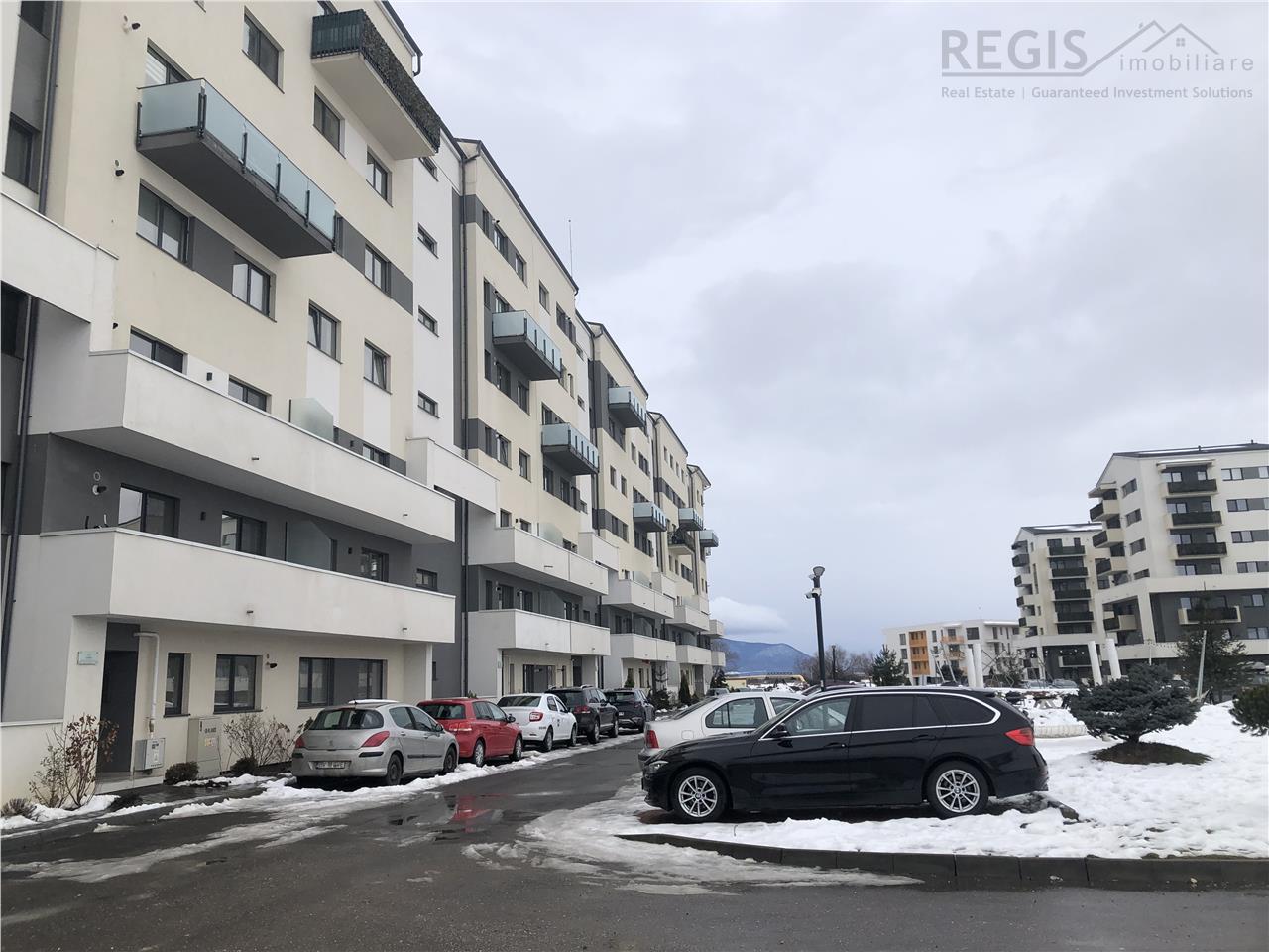 Bloc nou, cu spatii verzi, zone de relaxare, loc de joaca si teren de sport. Proximitati cu magazine, statie autobuze, acces rapid catre Aeroport, Gara BV,, in apropiere sunt scoli, gradinite, licee, Mall Coresi. Pretul locatiei nu include parcare, insa exista disponibilitate de achizitie a unui loc de parcare.
