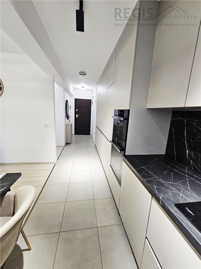 Se vinde complet mobilat si utilat premium. In apartament s-a locuit doar o luna, nu a fost inchiriat, totul fiind in stare impecabila.