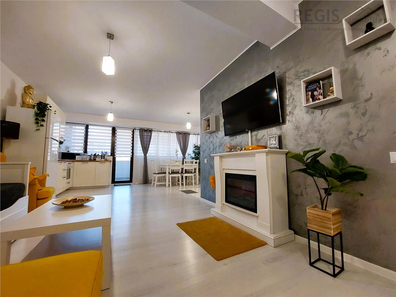 Este format din hol de acces, living+bucatarie deschisa, 2 dormitoare,terasa,2 toalete,debara.