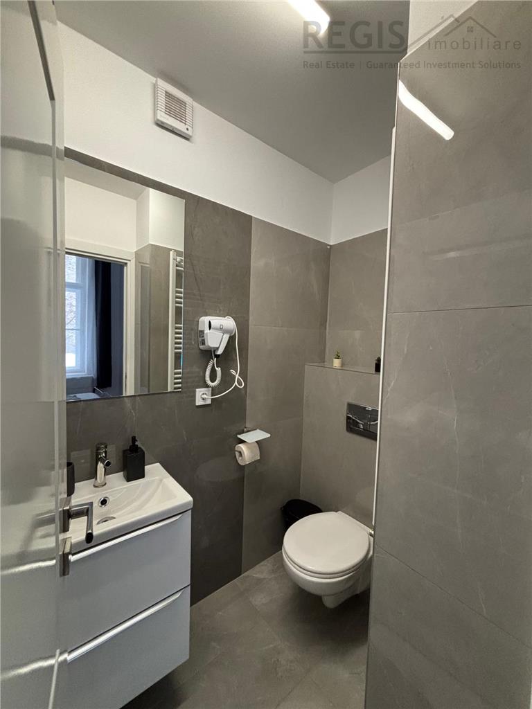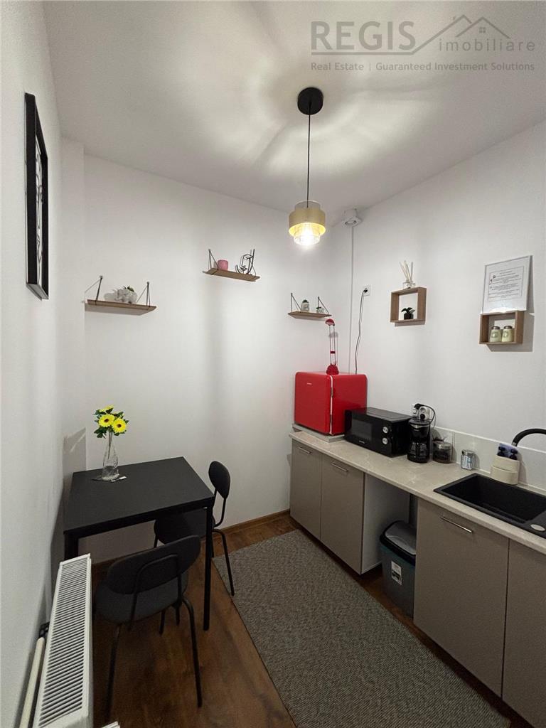 Proprietatea dispune de o suprafata utila de 62 mp, incalzire centrala proprie si izolatie eficienta, totul fiind nou si curat. Studioul are doua camere nedecomandate, oferind un spatiu deschis si confortabil. Ambele unitati au intrare comuna, dar pot fi inchiriate si separat. Intrarea se face direct din strada Republicii, iar chiriasii au acces la o curte interioara comuna.