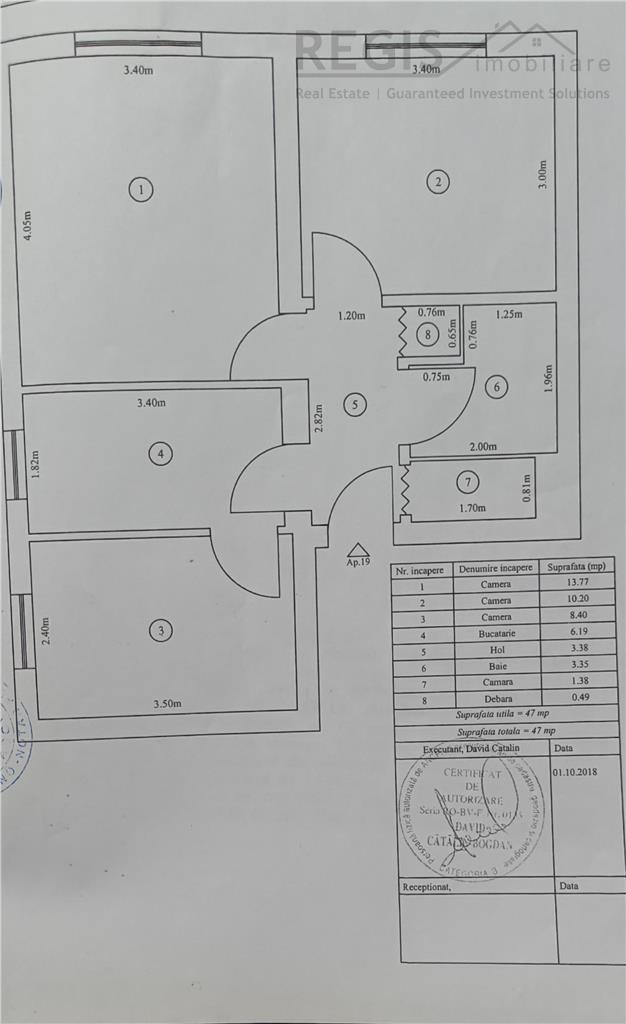 Compartimentare: 3 camere, baie, bucatarie, balcon