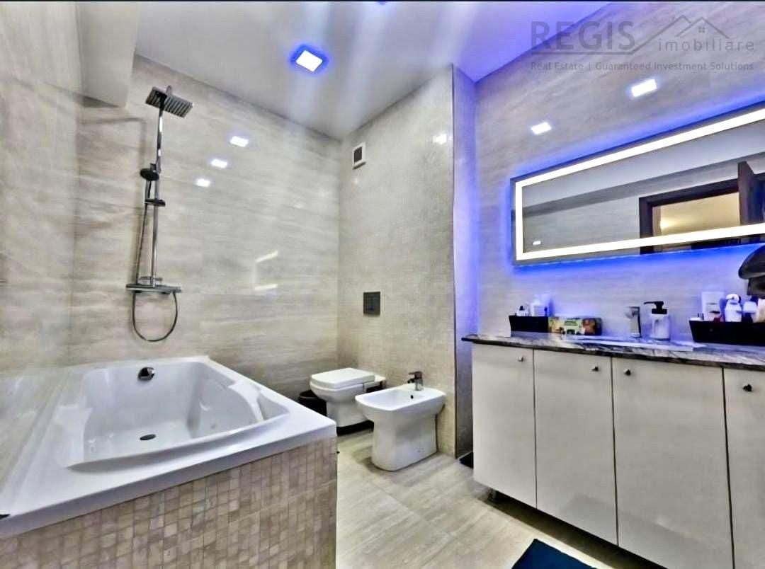 - Dormitor principal mobilat (13,78 mp) cu dressing (3,55 mp) si baie proprie cu cada (6,24 mp)