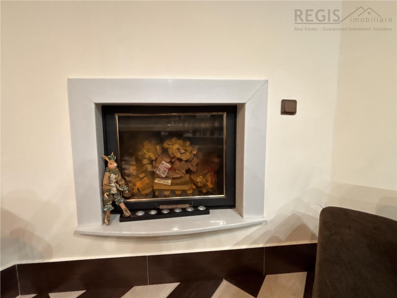 -Living generos de 26 mp, prevazut cu biblioteca si semineu pe lemne, urmat de bucatarie si zona pentru servirea mesei, plus un spatiu de depozitare.