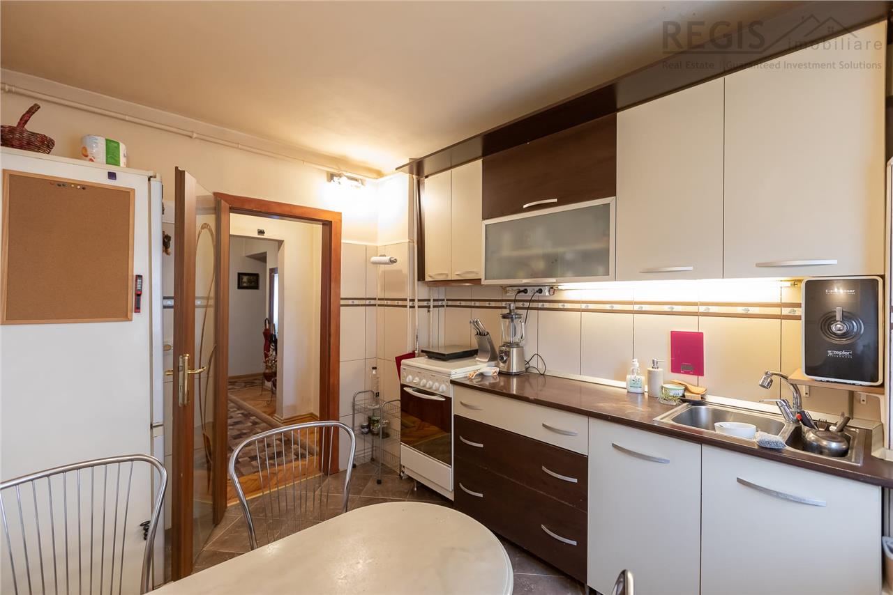 Are centrala termica proprie, bucatarie inchisa, 2 bai si boxa la subsol.