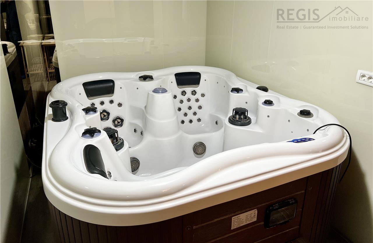 Proprietatea este confortabil compartimentata dupa cum urmeaza- la intrare hol si baie de serviciu, urcam scarile somptuose spre nivelul 1 unde avem zona de dormitoare si relaxare. Doua dormitoare matrimoniale cu suprafata generoasa cu bai foarte mari si zone de depozitare, inca doua dormitoare spatioase, SAUNA uscata si JACUZZI, hol generos., baie La etajul urmator, avem living cu chicineta si loc de luat masa cu suprafete foarte generoase, cu inaltime mare si geamuri panoramice. Tot aici terasa generoasa aferenta livingului cu deschidere impecabila catre munte.
