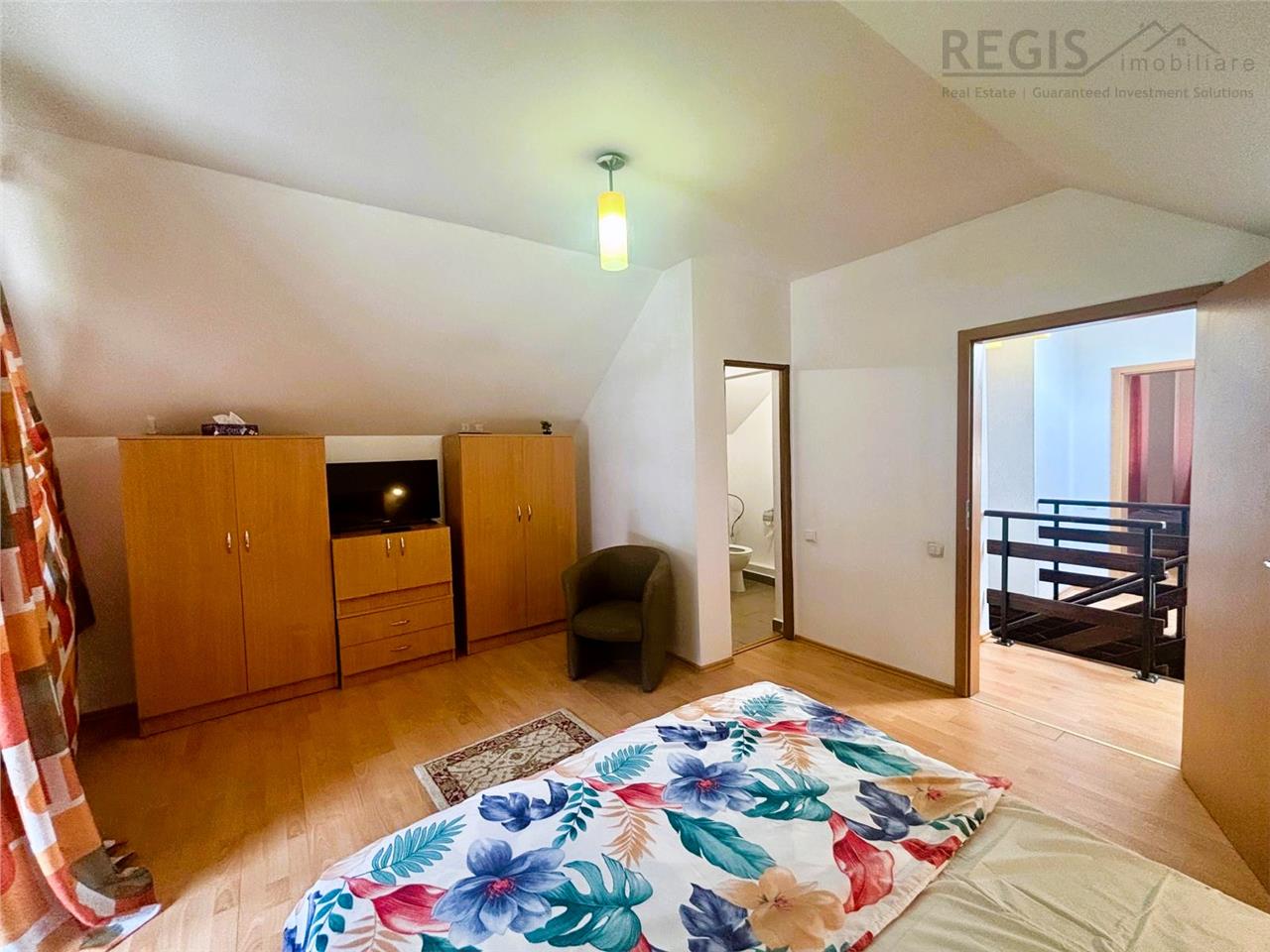 Mansarda este formata din 2 dormitoare cu baie proprie.Proprietatea ofera un total de 10 camere luminoase, multiple bai si spatii comune generoase. Fiecare nivel este gandit pentru confort si functionalitate, fiind potrivit pentru familii numeroase sau pentru gazduirea turistilor.