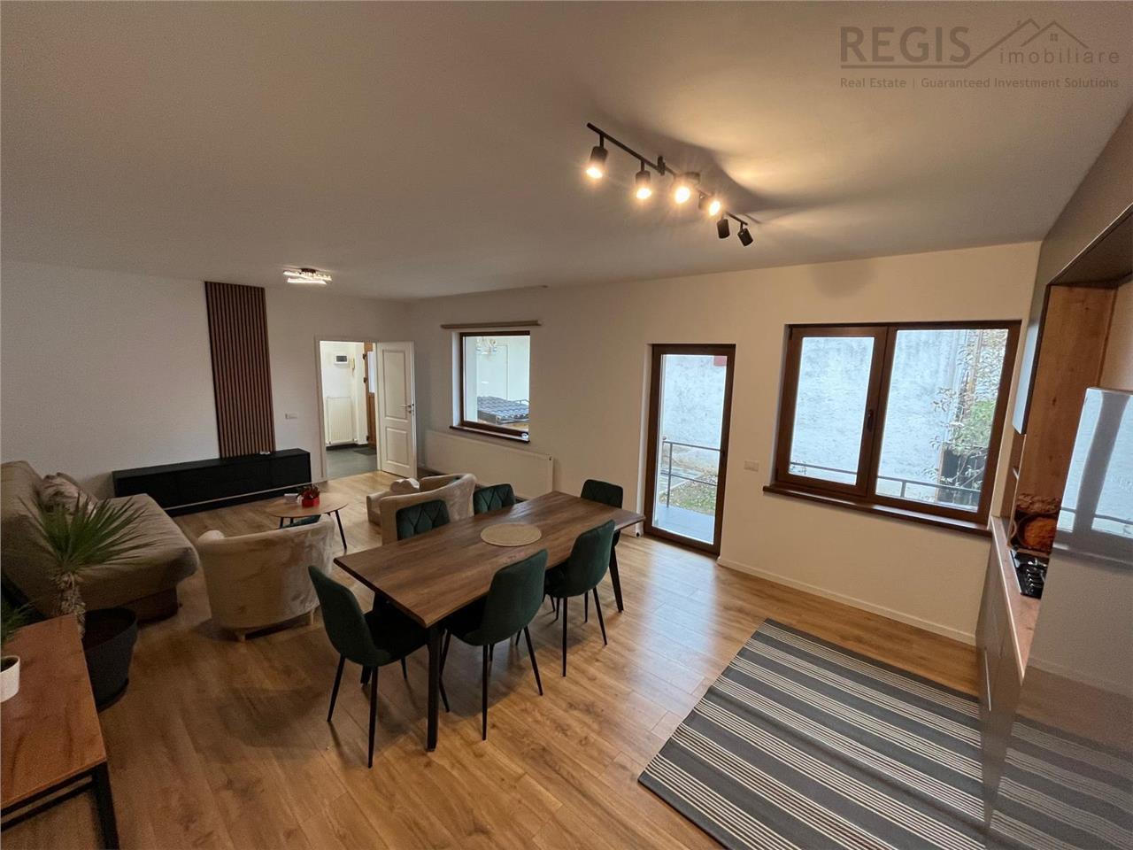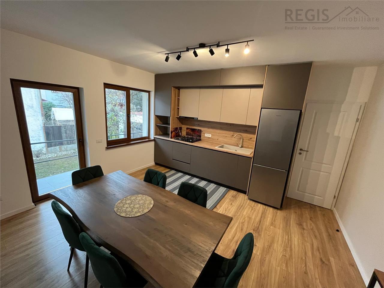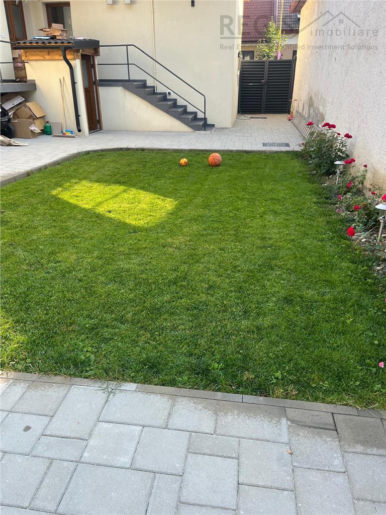 Livingul + bucataria au impreuna 30 mp, fiind utilat cu aragaz, frigider, masina de spalat vase si de spalat rufe. Locatia va ofera un ambient de poveste si in acelasi timp ambient modern cu tot ce ati putea avea nevoie pentru confortul familiei dvs. In plus curtea are gazon de iarba, si in felul acesta va bucurați de aer curat.