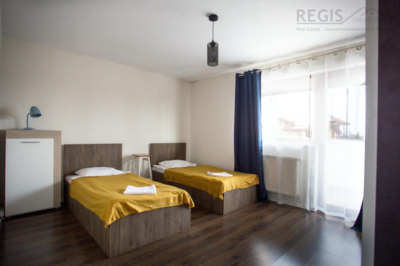 REGIS Imobiliare va propune spre inchiriere o casa cu 5 camere, dispusa pe 2 nivele in Harman. Aceasta se afla intr-o zona linistita. Proprietatea a fost construita in anul 2017 si in anul 2019 modernizata de proprietar, aceasta se afla pe un teren de 400mp, cu acces la drum.