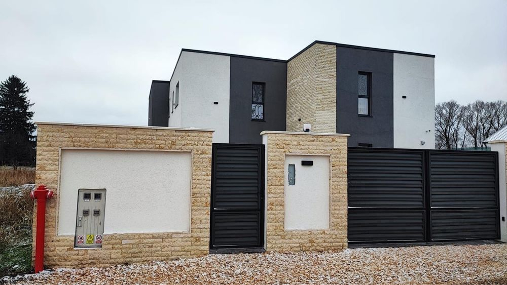 Constructia este realizata din materiale de calitate superioara, avand poze din toate etapele de executie. Se vinde finisata cum se vede in poze .Viitorii proprietari au posibilitatea de a-si personaliza locuinta cu finisajele dorite. Curtea este amenajata, avand acces automatizat.