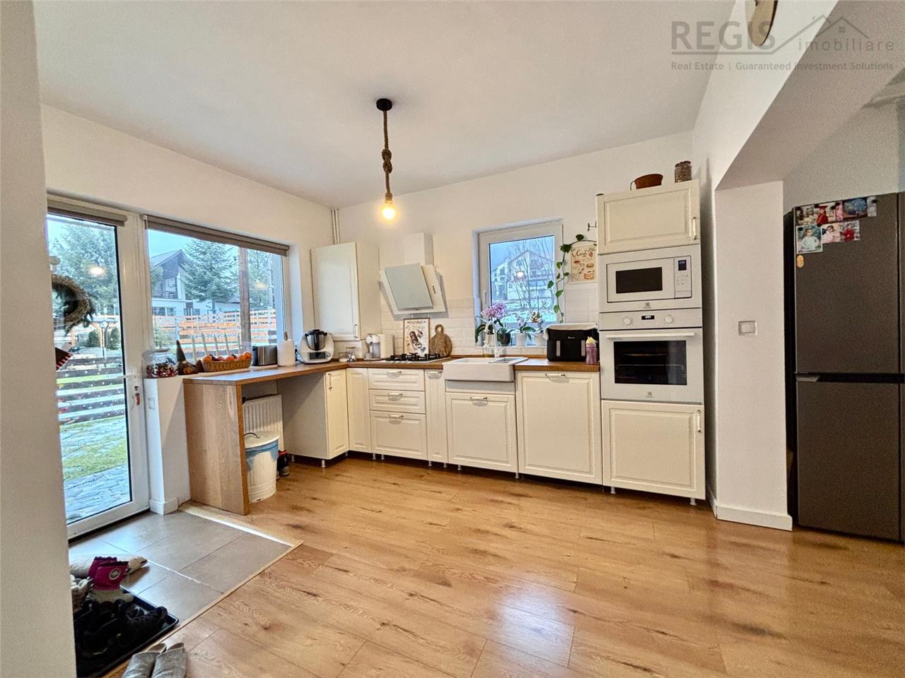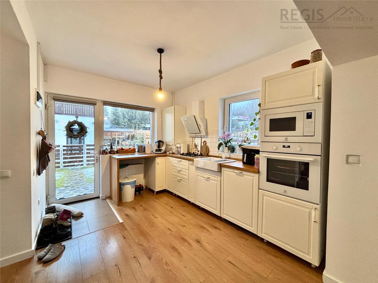 Duplexul beneficiaza de finisaje moderne, atent alese, si este dotat cu semineu pe lemne, care ofera un plus de confort si atmosfera in sezonul rece. Un avantaj important il reprezinta panourile fotovoltaice de 5kw ce asigura eficienta energetica si costuri reduse de intretinere.