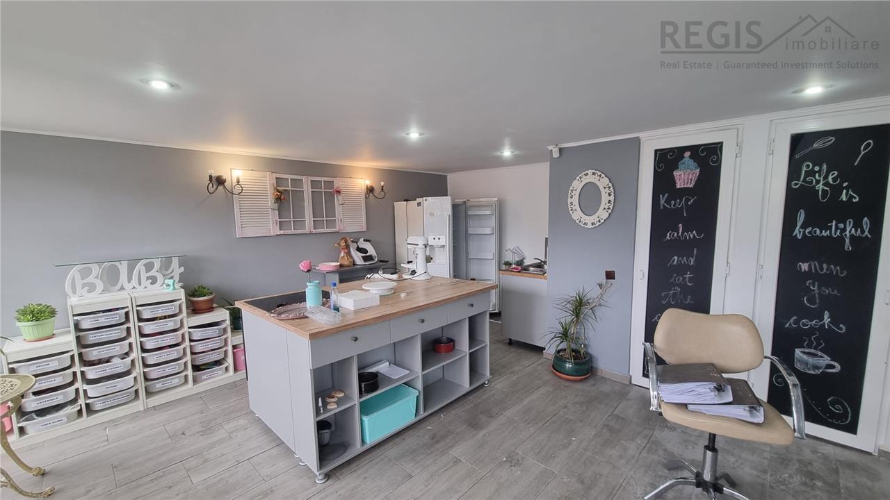 Curtea este complet amenajata si include foisor si zona de gratar, ideala pentru relaxare sau socializare, precum si o zona verde in spate care ofera intimitate. In fata exista acces auto si 4 locuri de parcare in curte, un avantaj clar pentru o familie sau pentru activitate mixta.Un beneficiu major al acestei proprietati este faptul ca in pret este inclus si un spatiu separat amenajat pentru laborator de cofetarie, ceea ce ofera oportunitate directa de business sau venit suplimentar, fara investitii initiale.Proprietatea este situata intr-o zona accesibila, aproape de supermarket, mall la 5 minute, scoli si statii de autobuz, oferind acces rapid la tot ce este necesar in viata de zi cu zi.