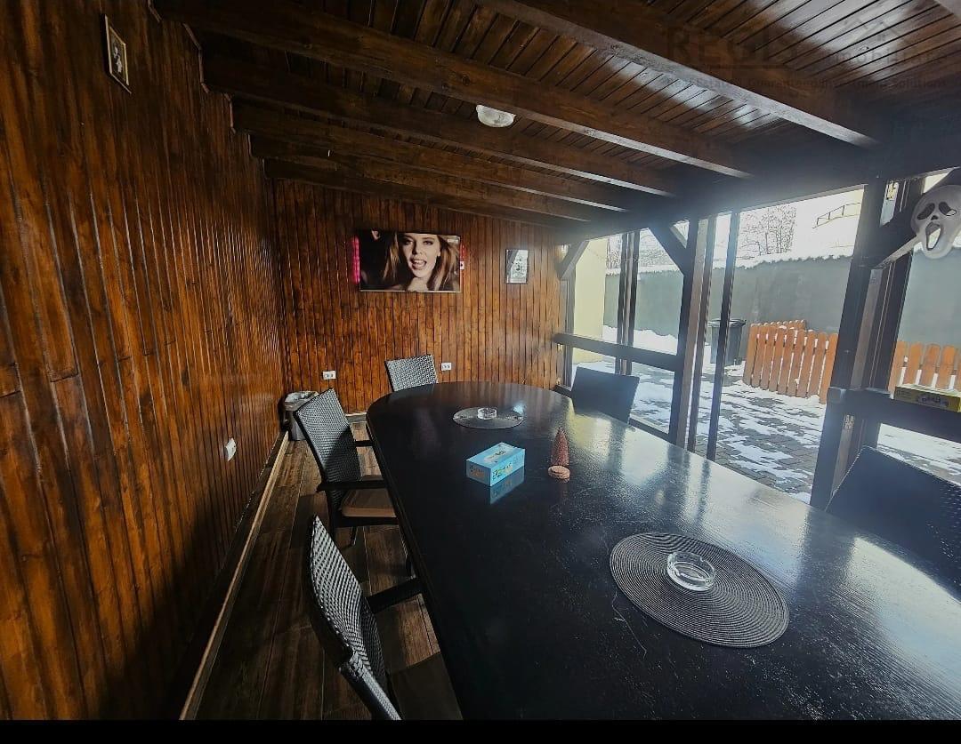 Un alt punct forte al proprietatii este terasa inchisa cu pereti de sticla, un spatiu elegant si luminos care poate fi folosit pe tot parcursul anului, fie pentru relaxare, fie pentru intalniri cu prietenii.