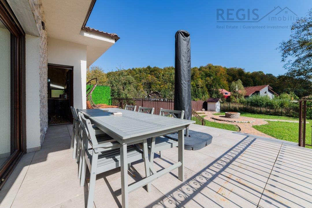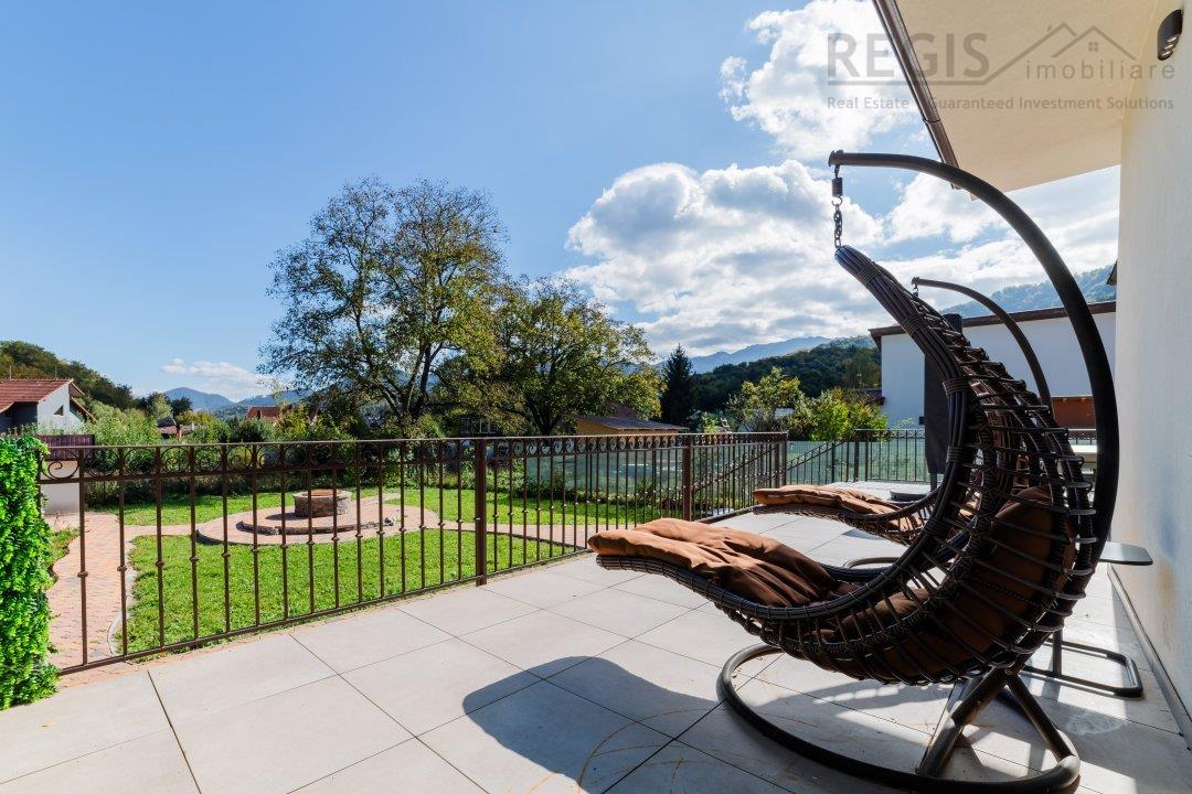 REGIS IMOBILIARE va propune spre vanzare o Vila Exceptionala in zona Noua Brasov, la poalele Tampei, inconjurata de verdele padurii. O oaza de liniste si relax la doar 15 min de centrul Brasovului. Un loc unde sa te deconectezi de stresul zilnic si sa fii fericit alaturi de cei dragi. Foarte aproape de marile zone Comerciale, Parcul Noua si Zoo Brasov.