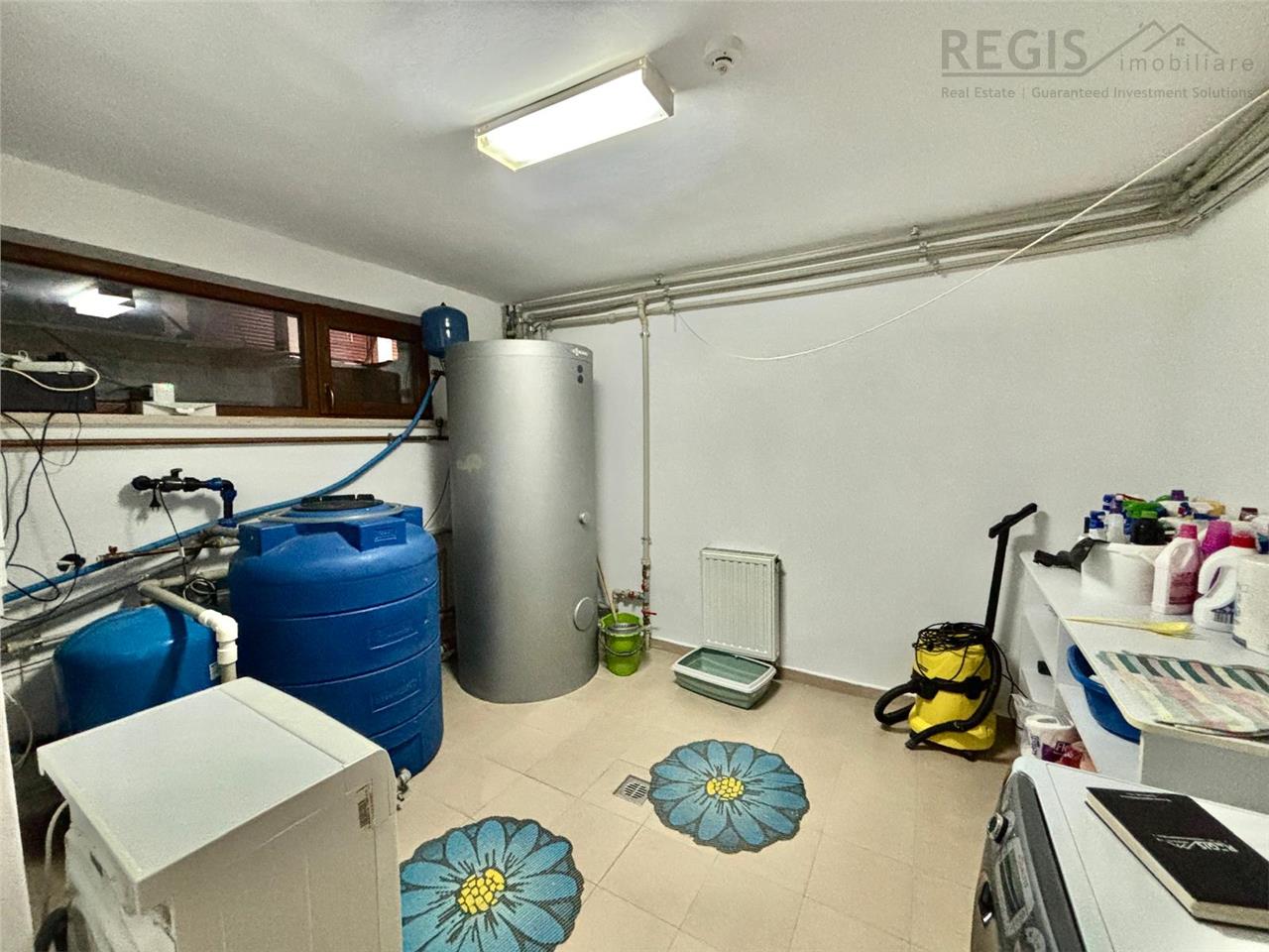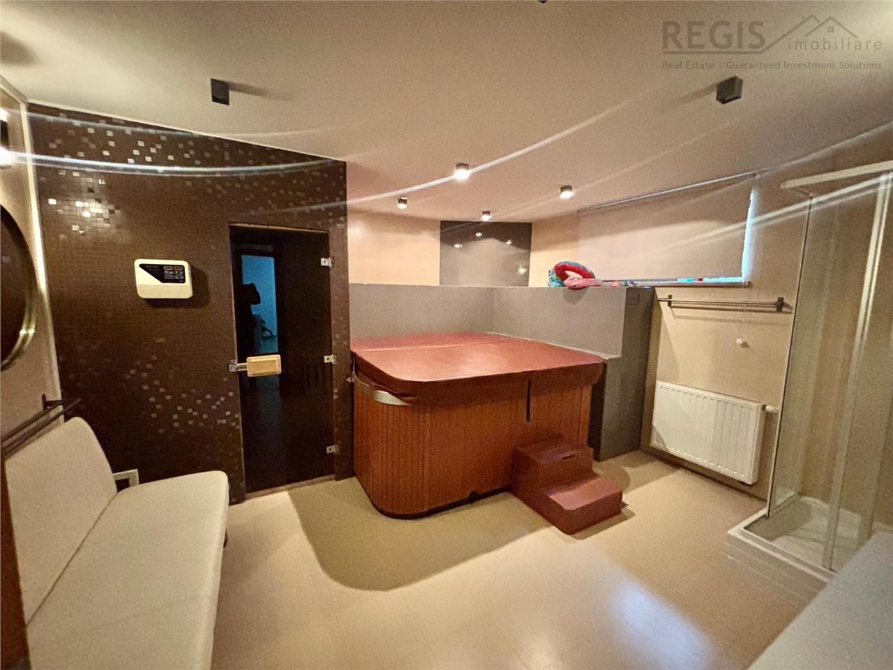 Vila dispune de finisaje premium, atent alese, si este dotata cu semineu,jacuzzi si sauna, oferind o experienta de relaxare completa, specifica unui concept de locuire exclusivist. Compartimentarea este moderna si eficienta, punand accent pe lumina naturala si spatiile ample.