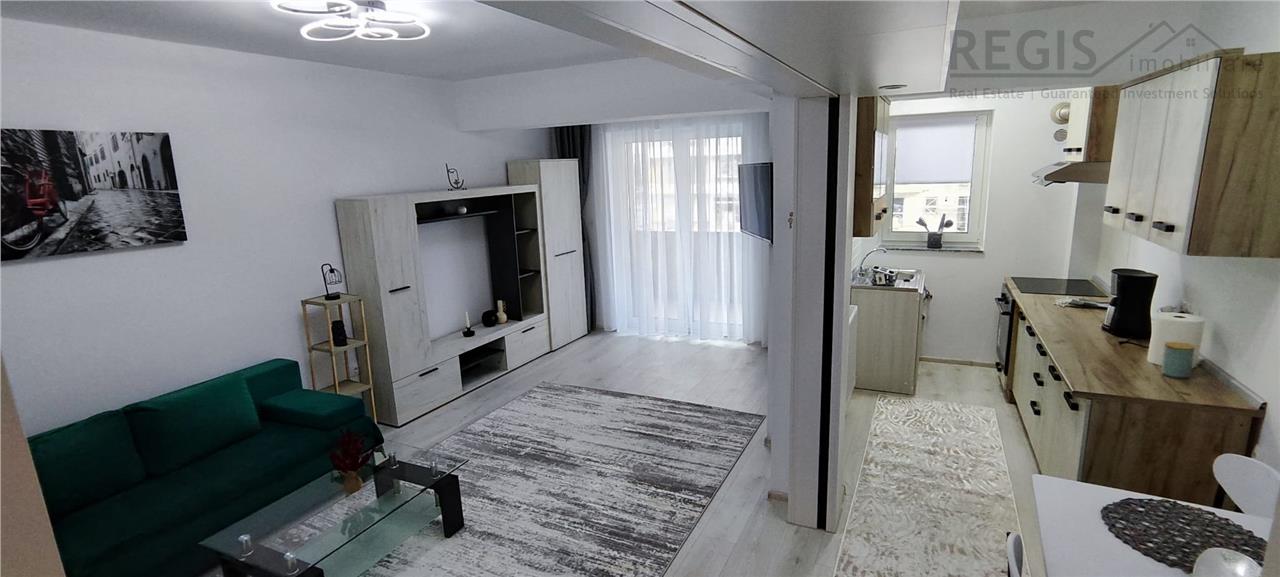 Garsoniera este situata la etajul 1 al unui bloc cu 9 etaje. Are o suprafata generoasa de 40mp, oferind confortul si functionalitatea necesare unui trai modern. Proprietatea este compartimentata astfel: bucataria complet mobilata si utilata, inchisa cu un perete mobil, care prin manevrare usoara poate crea un spatiu open space, camera mobilata cu un coltar extensibil, baie dotata cu cada, complet echipata.