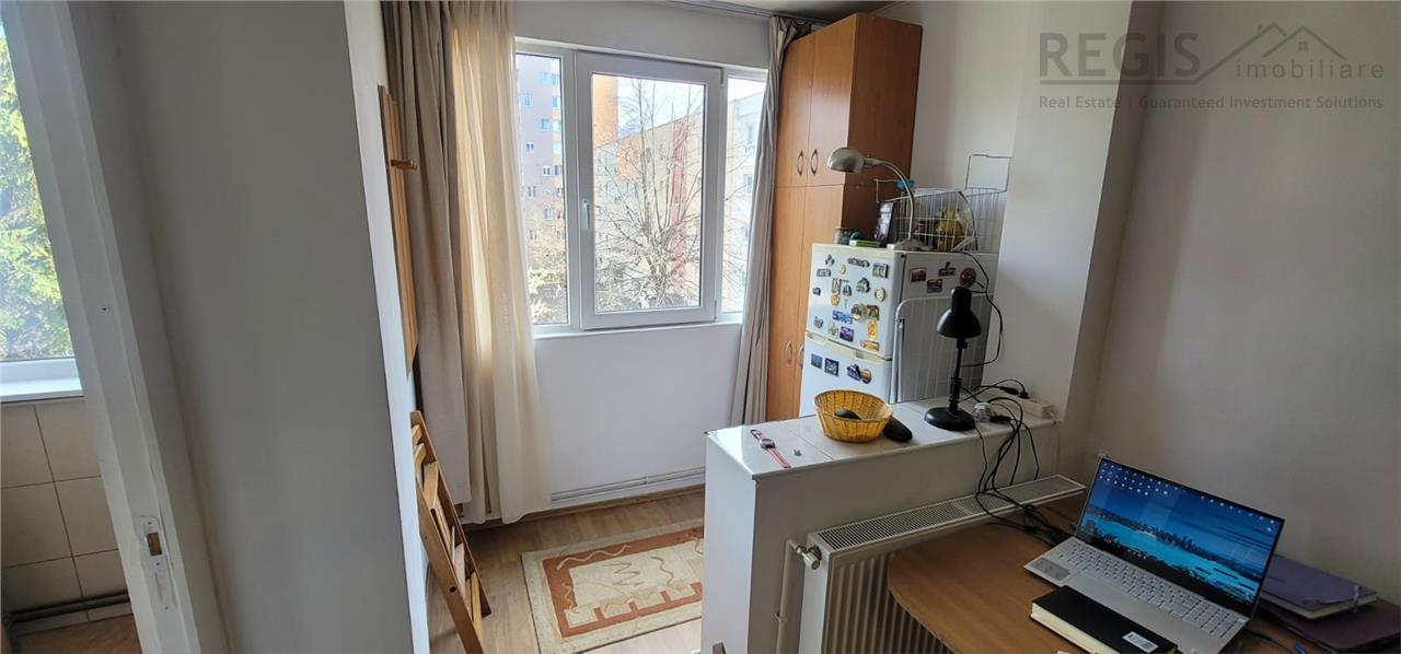 REGIS Imobiliare va propune spre vanzare o garsoniera luminoasa, semidecomandata, cu suprafata utila de 30 mp, situata la etaj intermediar, etajul 3 din 9, pe strada Soarelui, intr-un bloc cu 9 etaje, intr-o zona linistita. Garsoniera este partial mobilata si utilata, gata de mutare, dispune de geamuri termopan si centrala termica proprie si are clasa energetica A. Blocul dispune de interfon si lift.