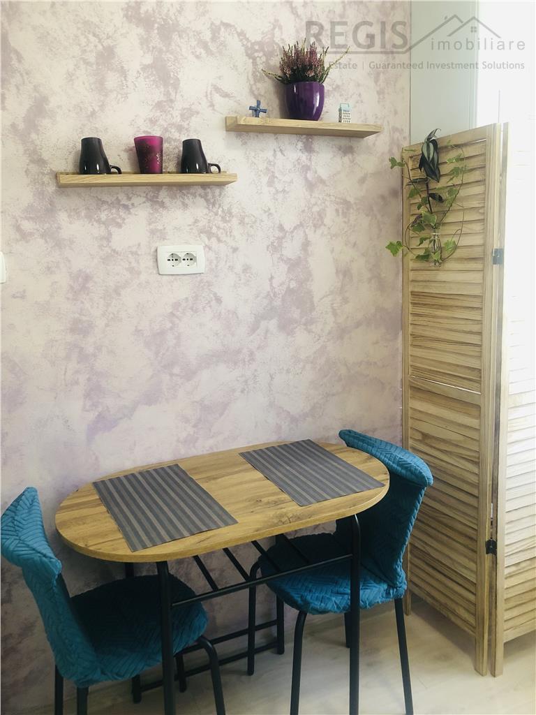 REGIS Imobiliare va propune pentru inchiriere o garsoniera de 33 mp, etaj 1, decomandata langa Lidl Saturn Astra. Statie autobuze la 3 minute. Blocul este reabilitat termic intro zona cu spatii verzi de jur imprejur. Mobilata modern, utilata cu tot ce aveti nevoie, inclusiv vesela noua. Locatia este inchiriata pentru prima data. Priveliste superba montana. Centrala Vaillant, instalatii electrice si sanitare schimbate. Camera de dormit are canapea extensibila, si fotoliu care se face pat, fiind un set elegant de mobilier. Dressingul este deosebit marca Lems, ocazie perfecta sa va organizati lucrurile dupa bunul plac. Bucataria are zona de servit masa si usa din sticla pentru a patrunde lumina si a da eleganta locului Locatia are lumina naturala pe tot parcursul zilei. Dotari moderne: frigider, aragaz, hota, masina de spalat rufe, cuptor, aspirator nou. Baia are cada cu hidromasaj + radio pentru momente de relaxare. Termopane de calitate care mentin caldura, parchet, gresie si faianta impecabile.