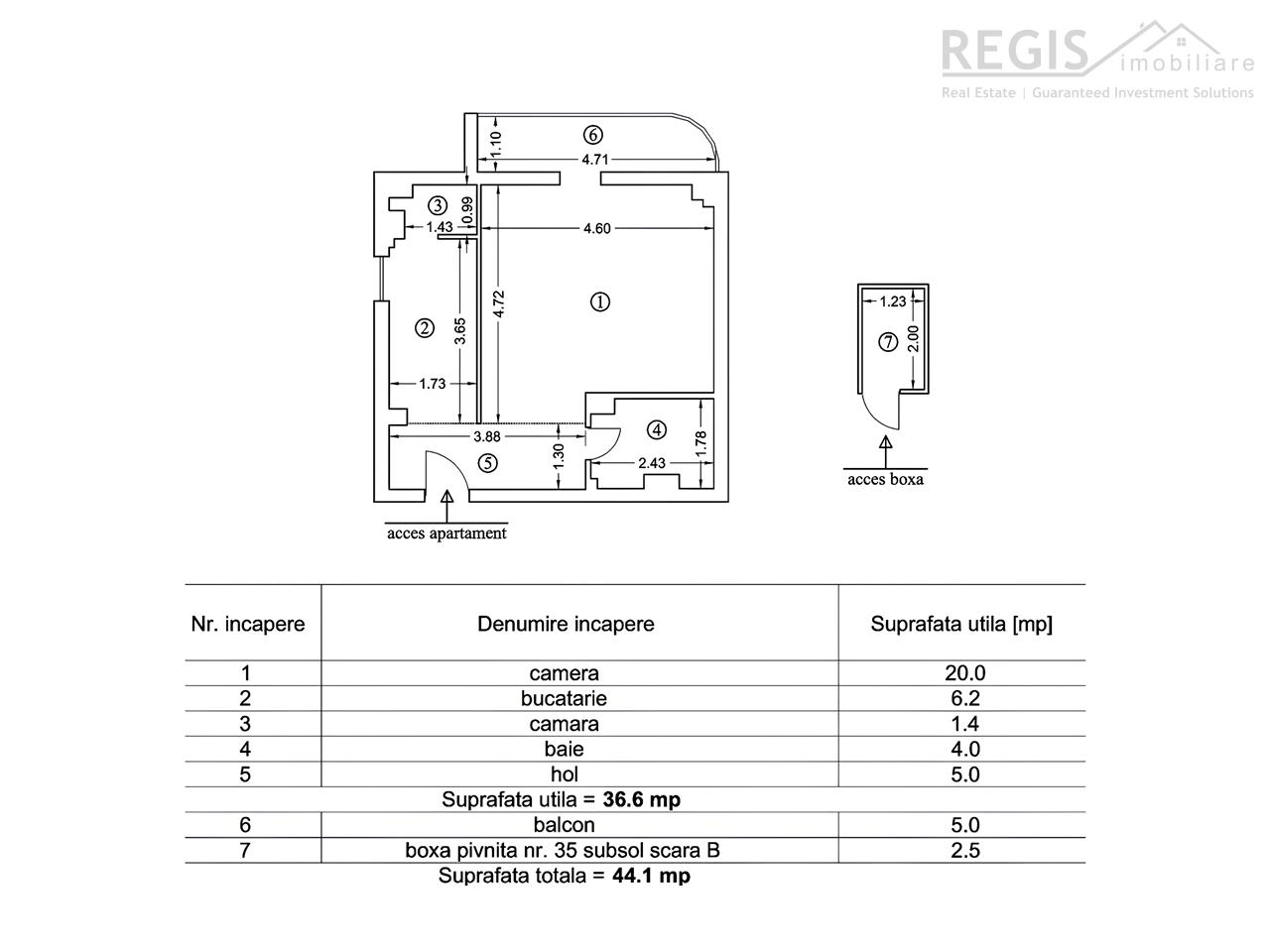 - Suprafata 36,6 mp utili + 5 mp balcon