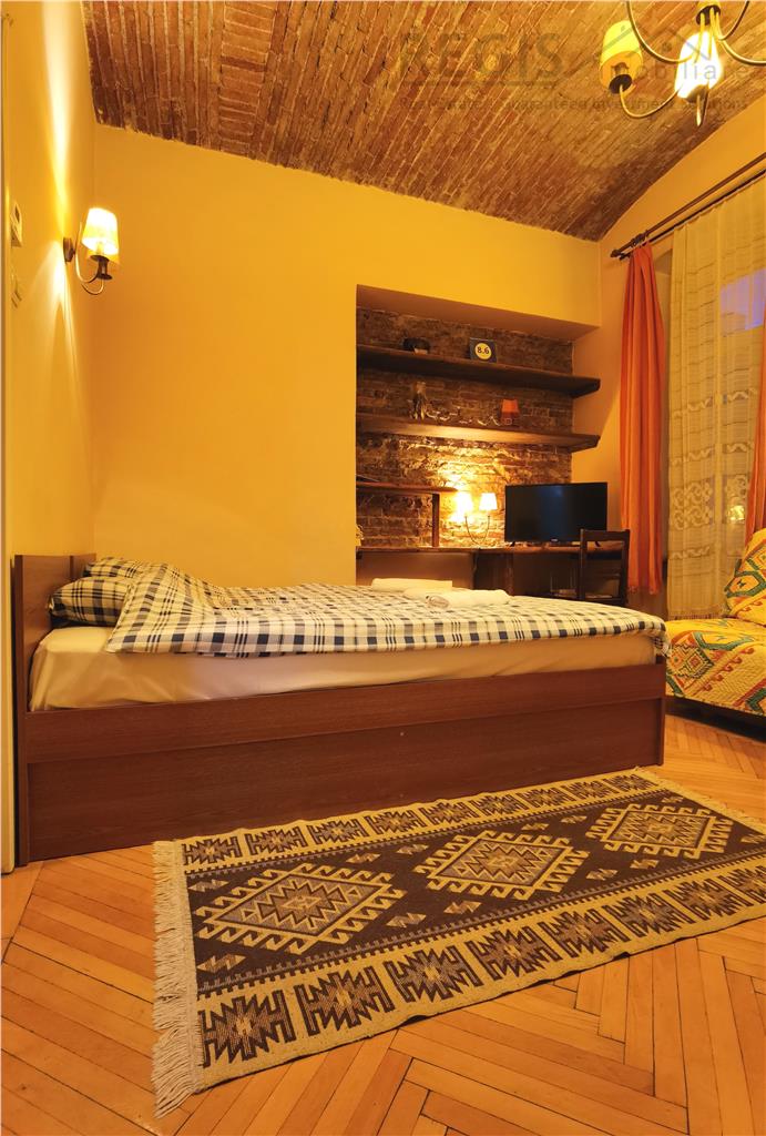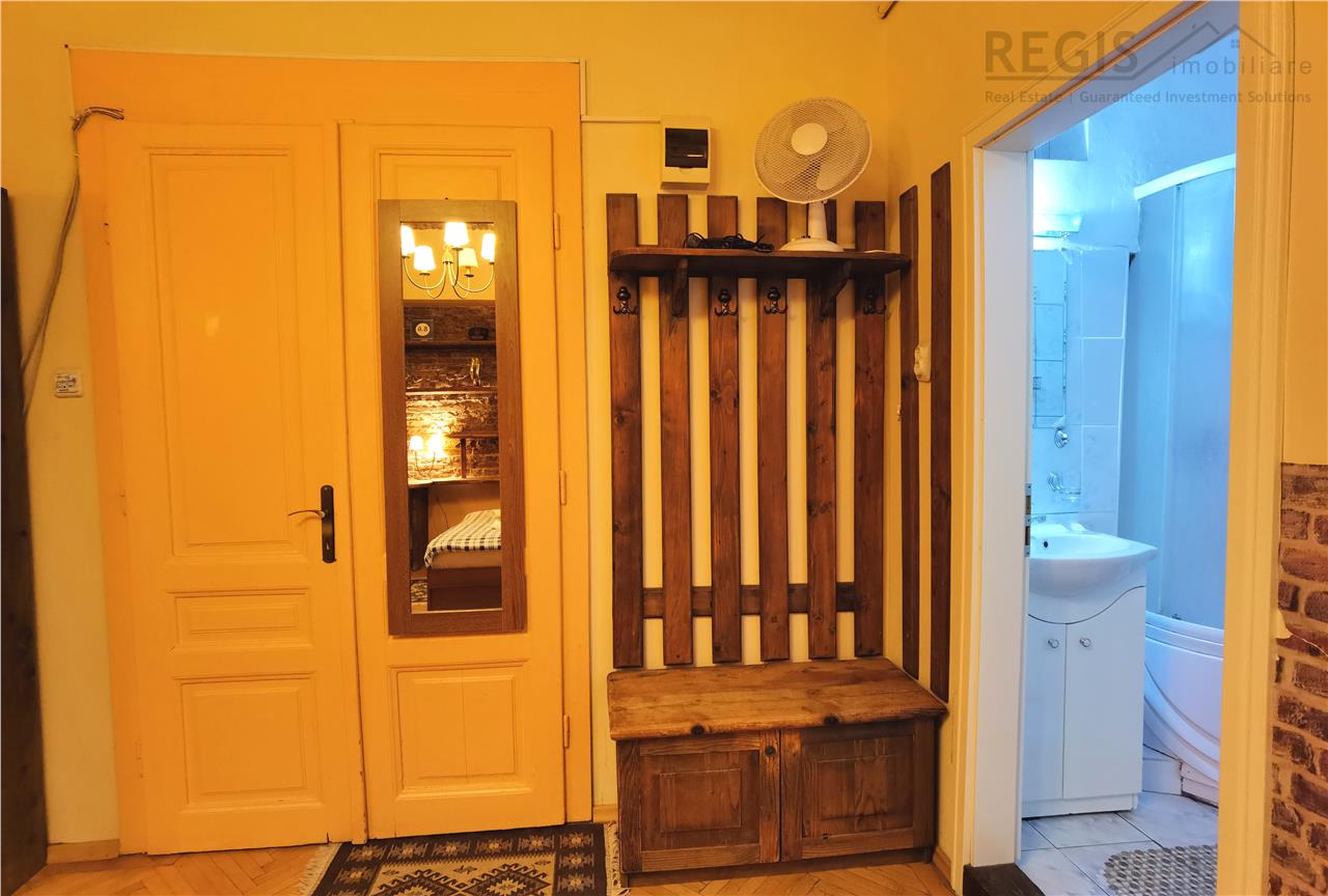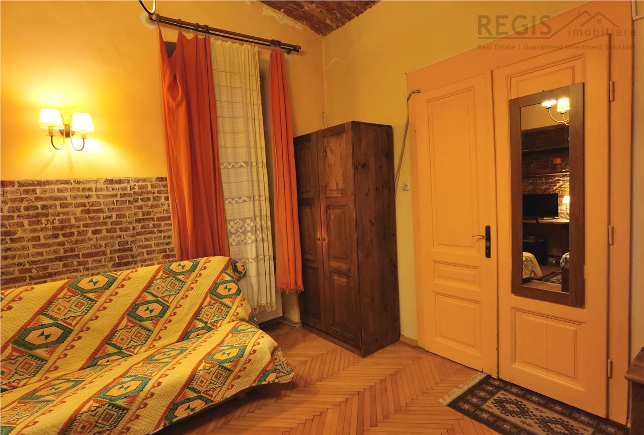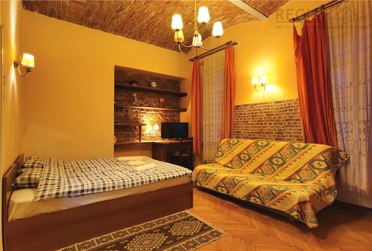 Regis Imobiliare are placerea sa-ti prezinte o garsoniera confortabila in inima Centrului Istoric al Brasovului, situata intr-un imobil cu o istorie indelungata. Garsoniera este situata la etajul intai dintr-un total de doua, oferindu-ti intimitate si liniste intr-o locatie centrala. Este pretabila pentru regim hotelier sau locuinta.