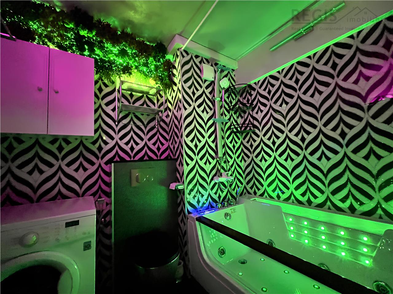 - plita, cuptor, cuptor cu microunde, hota si masina de spalat vase Whirlpool, frigider Haier, masina de spalat rufe LG, cada jacuzzi si TV Panasonic