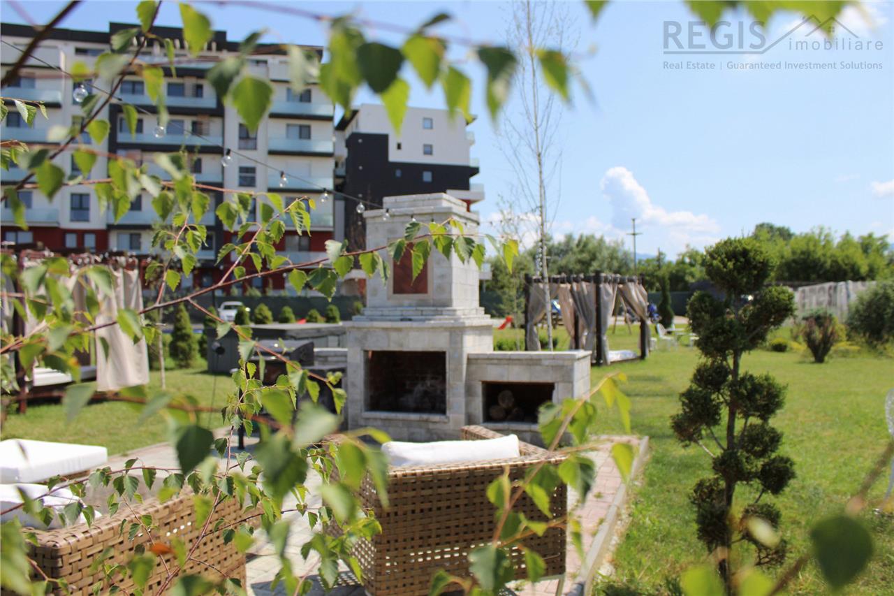 - acces la terasa complexului amenajata cu bean bag-uri, baldachine, canapea, pavilioane cu semineu pentru toti locatarii,