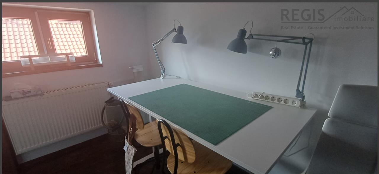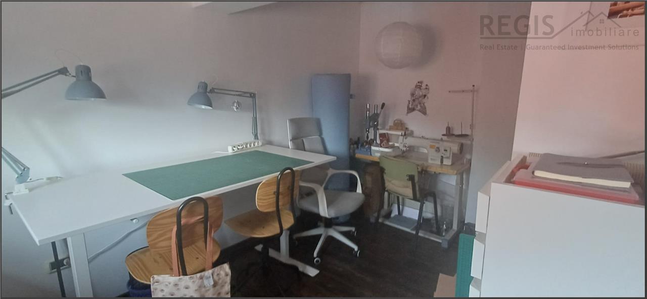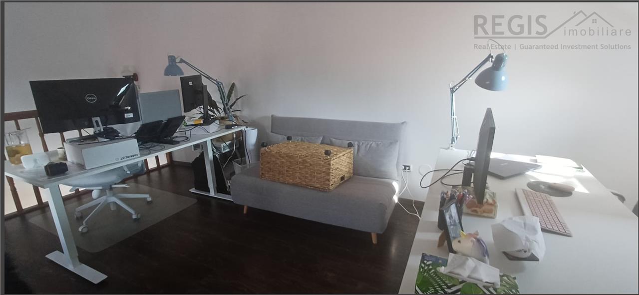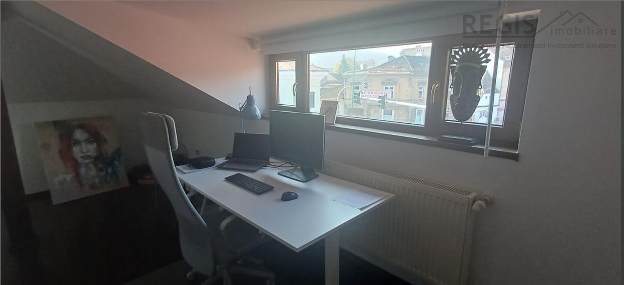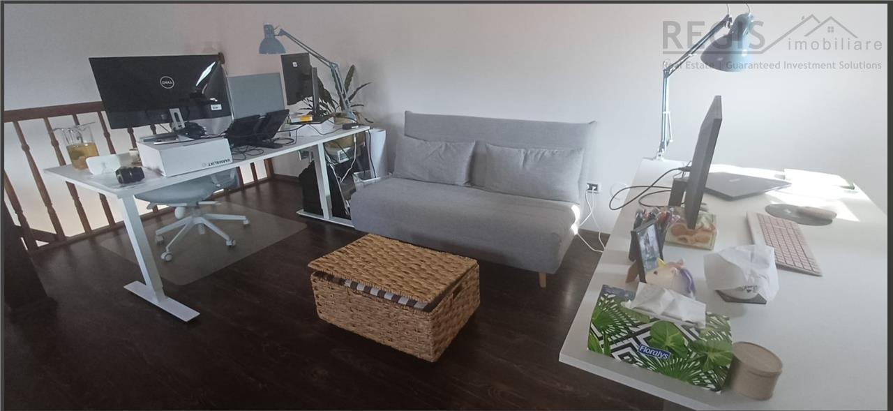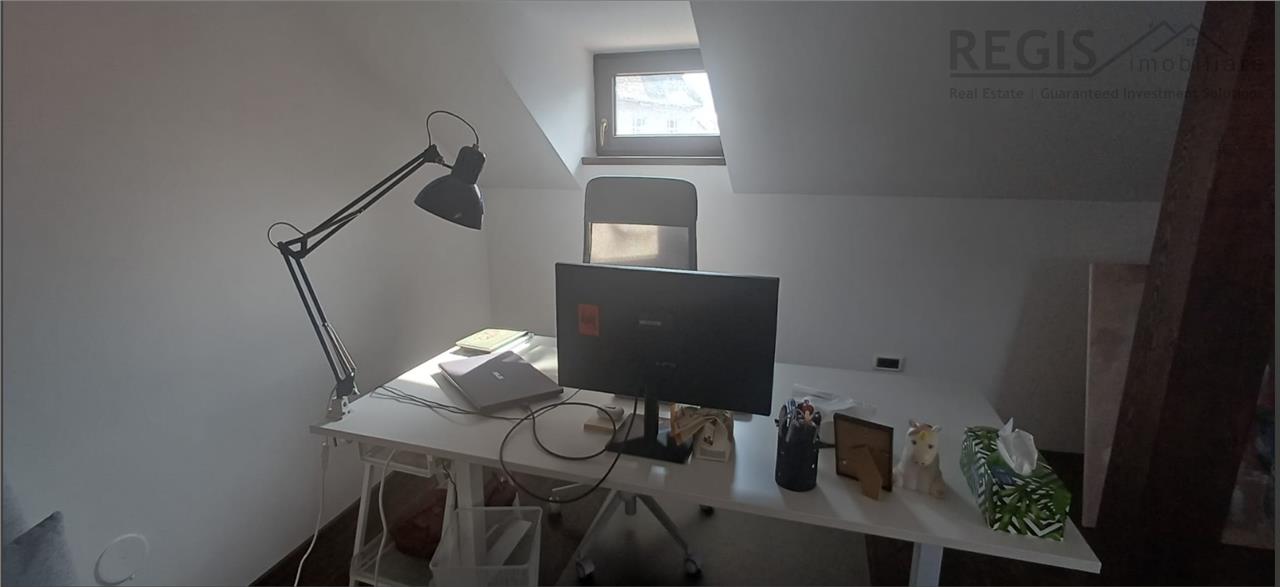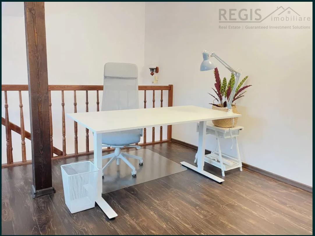 -mansarda cameră cu 3 birouri individuale 80x160 cm . Cele două spații comunică prin scara interioară.