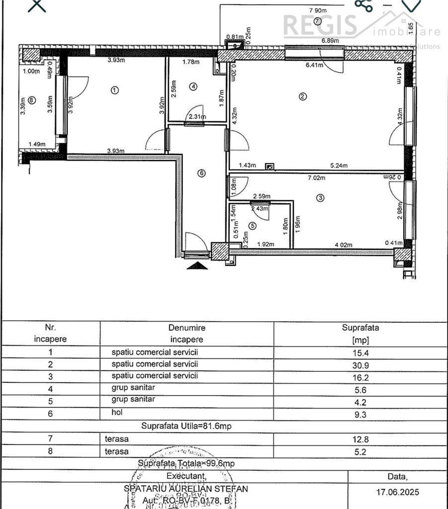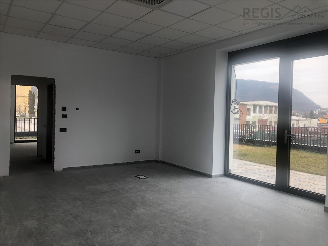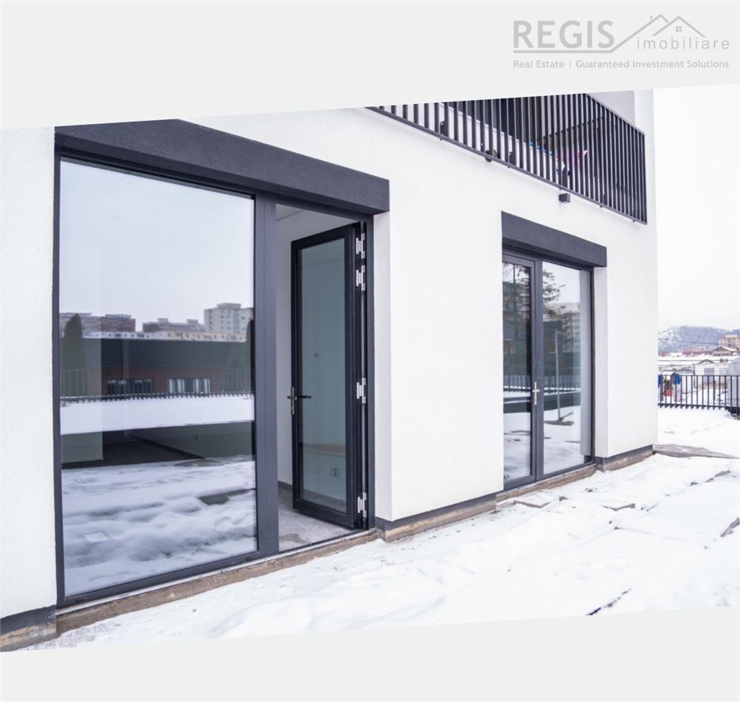 Spațiu comercial nou cu vitralii mari, suprafata 81.6 mp pe Strada Poienelor zona Curtea de Apel Brasov. Spatiul este amplasat la parter de bloc si ate inaltimea de 3,3m. Constructie noua 2025. Beneficiaza de climatizare.